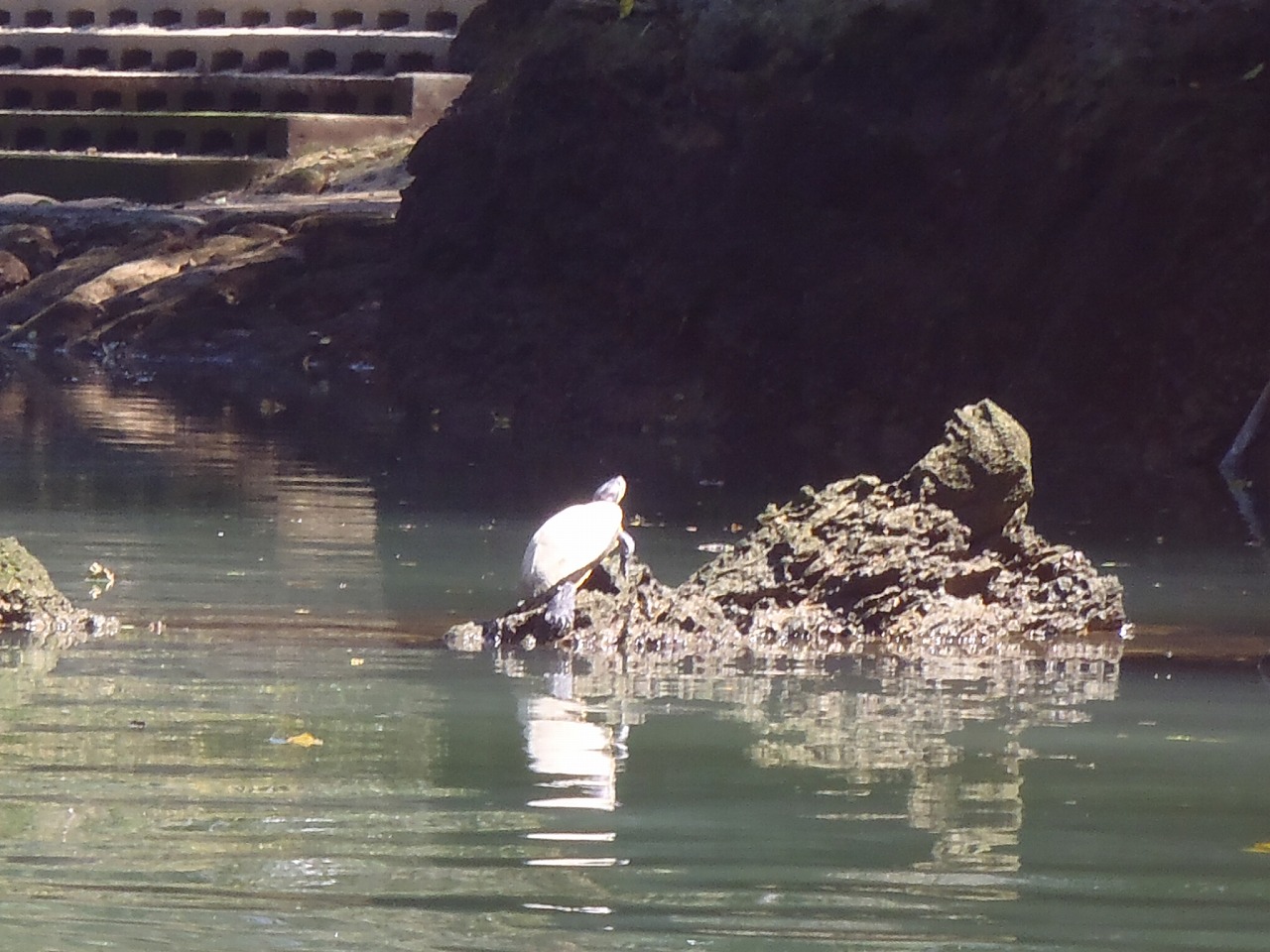 またまた久しぶりに見ました。お天気の良い日は甲羅干しをしています。近づくと逃げちゃいますけど。
